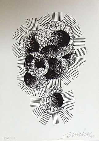 Preto Branco: serigrafias de João Samina. - Lisboa: edição do autor, de 1989. Contém 50 um conjunto de 50 serigrafias do artista dedicadas ao tema Preto / Branco, numa tiragem de 300 exemplares, numerados e assinados em cada uma das serigrafias. (Exemplar 146/300).